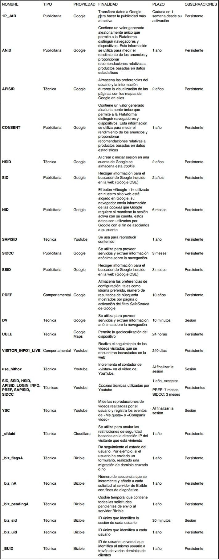 COOKIES QUE SE UTILIZAN EN ESTE SITIO WEB
