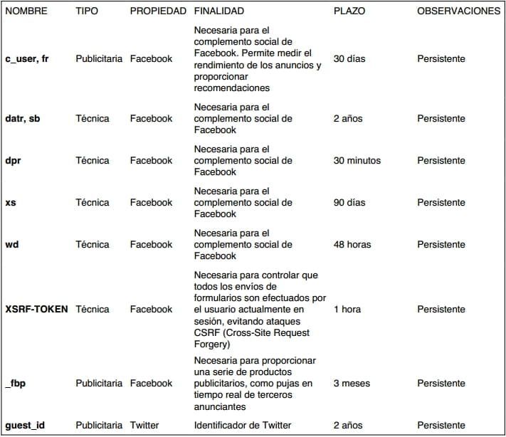 http://www.lssi.gob.es/Paginas/politica-cookies.aspx y Guía sobre el uso de las cookies de la AEPD. - Cookies sociales: son establecidas por las plataformas de redes sociales en los servicios para permitirle compartir contenido con sus amigos y redes. Las plataformas de medios sociales tienen la capacidad de rastrear su actividad en línea fuera de los Servicios. Esto puede afectar al contenido y los mensajes que ve en otros servicios que visita.